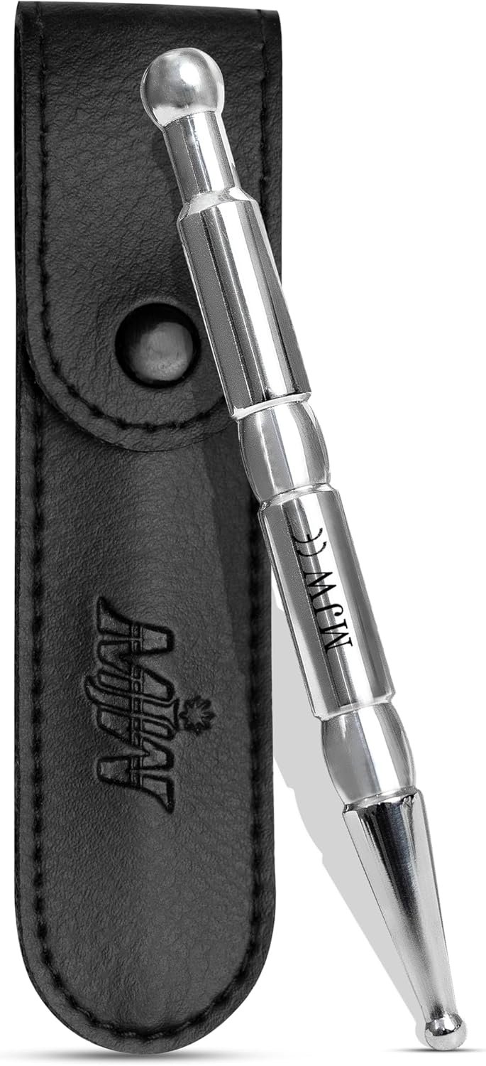 MJW Stainless Steel Acupressure Pen for Pain Relief – Facial Reflexology & Meridian Massage Tool, Manual Trigger Point & Acupuncture Therapy, Silver