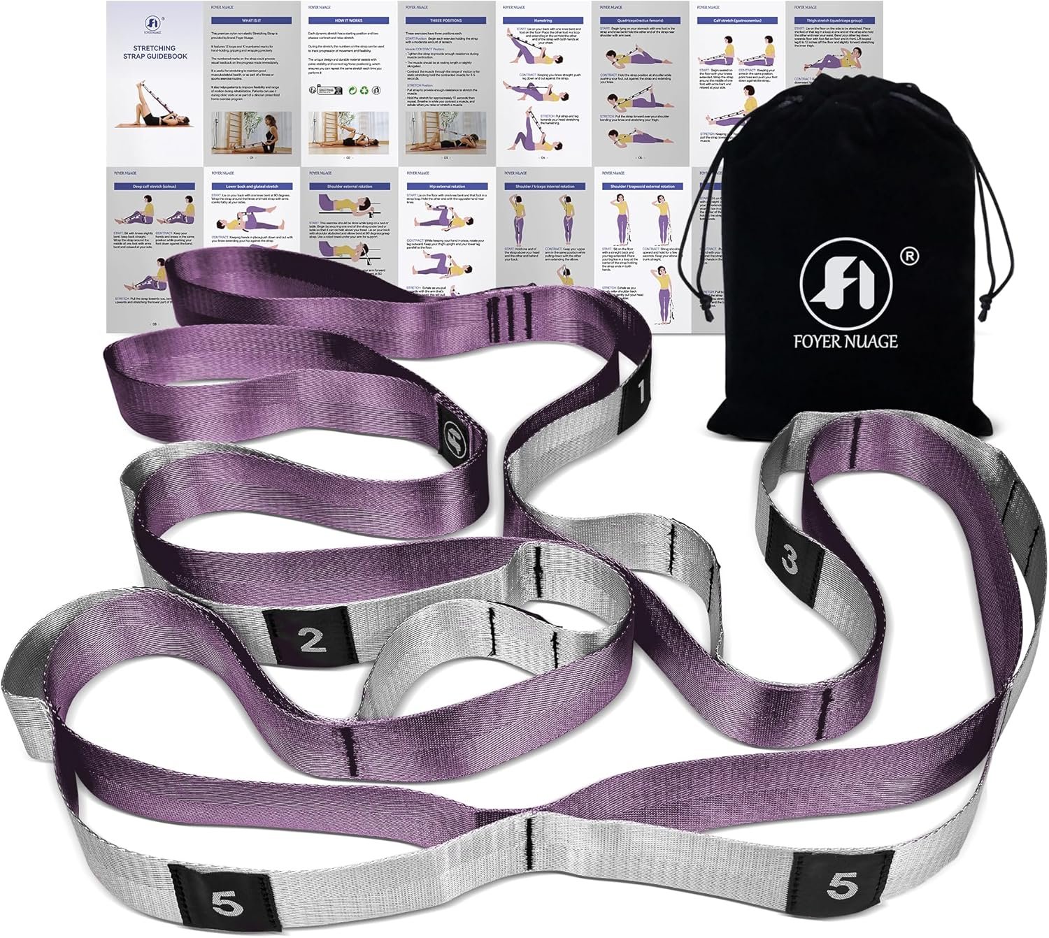 Foyer Nuage Stretch Bands for Exercise, Non Elastic Yoga Stretching Strap with Loops, 3.8cm x 2.45m, Stretching Bands for Physical Therapy, Yoga, Pilates,...