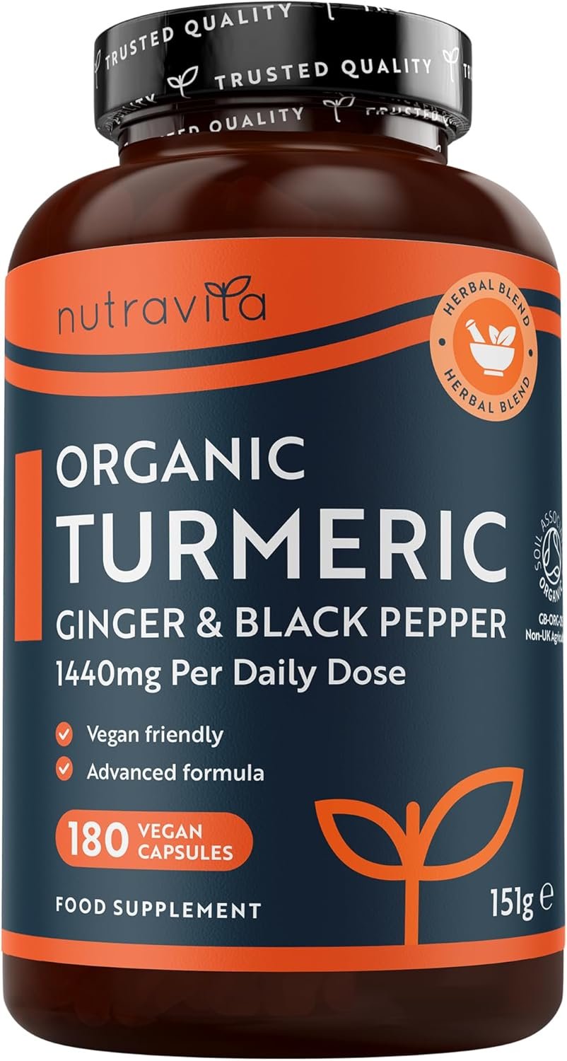 - ✔ WHY BUY NUTRAVITA’S ORGANIC TURMERIC WITH BLACK PEPPER & GINGER? – Each 1440mg daily serving (2 capsules) of our Organic Turmeric contains: 1340mg of Organic Turmeric (670mg per capsule), 80mg of Organic Ginger (40mg per capsule), and 20mg of Organic Black Pepper (10mg per capsule). You can be assured that you are getting one of the highest strength Organic Turmeric supplements on Amazon. Each bottle with 180 capsules will last for a 3 month supply, that is incredible value for money.